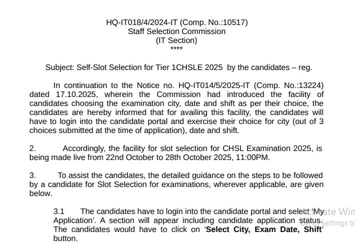 | Staff Selection Commission CHSL Slot Selection 2025 | |
